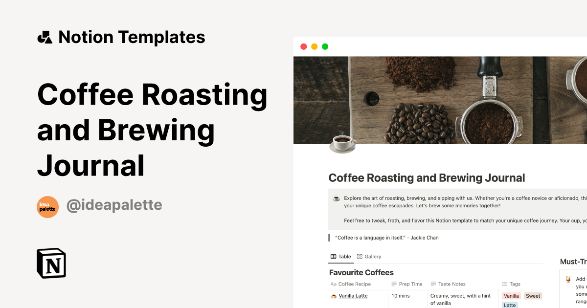 Coffee Roasting and Brewing Journal Template by Idea Palette | Notion ...