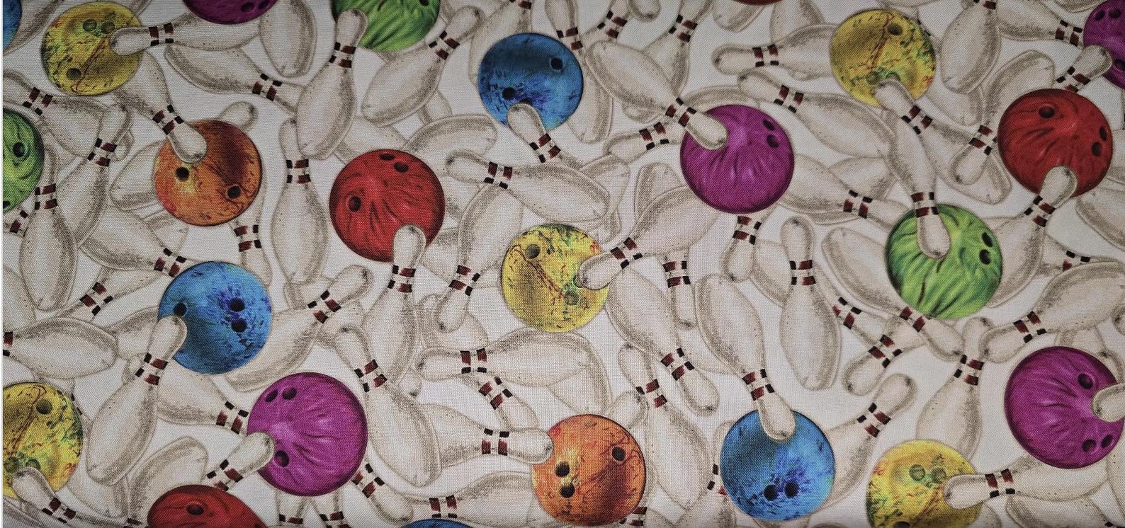 Robert Kaufman Retro Bowling Pins and Balls AQZD-22854-256 Fabric by ...