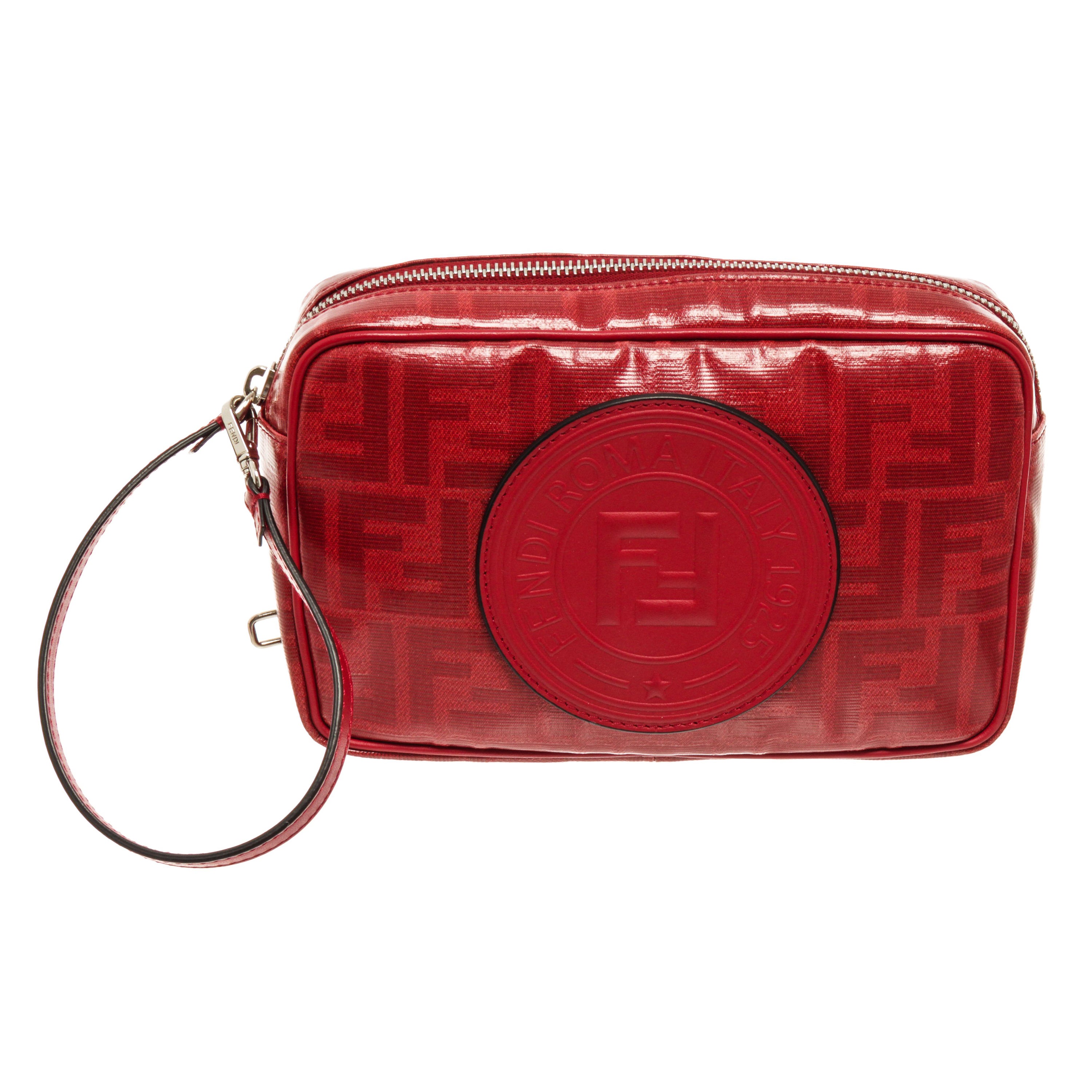 Fendi Red Leather FF Logo Stramp Crossbody Bag For Sale at 1stDibs