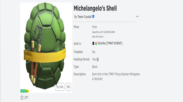 FREE UGC LIMITED! HOW TO GET Michelangelo's Shell! (ROBLOX RoVille TMNT ...