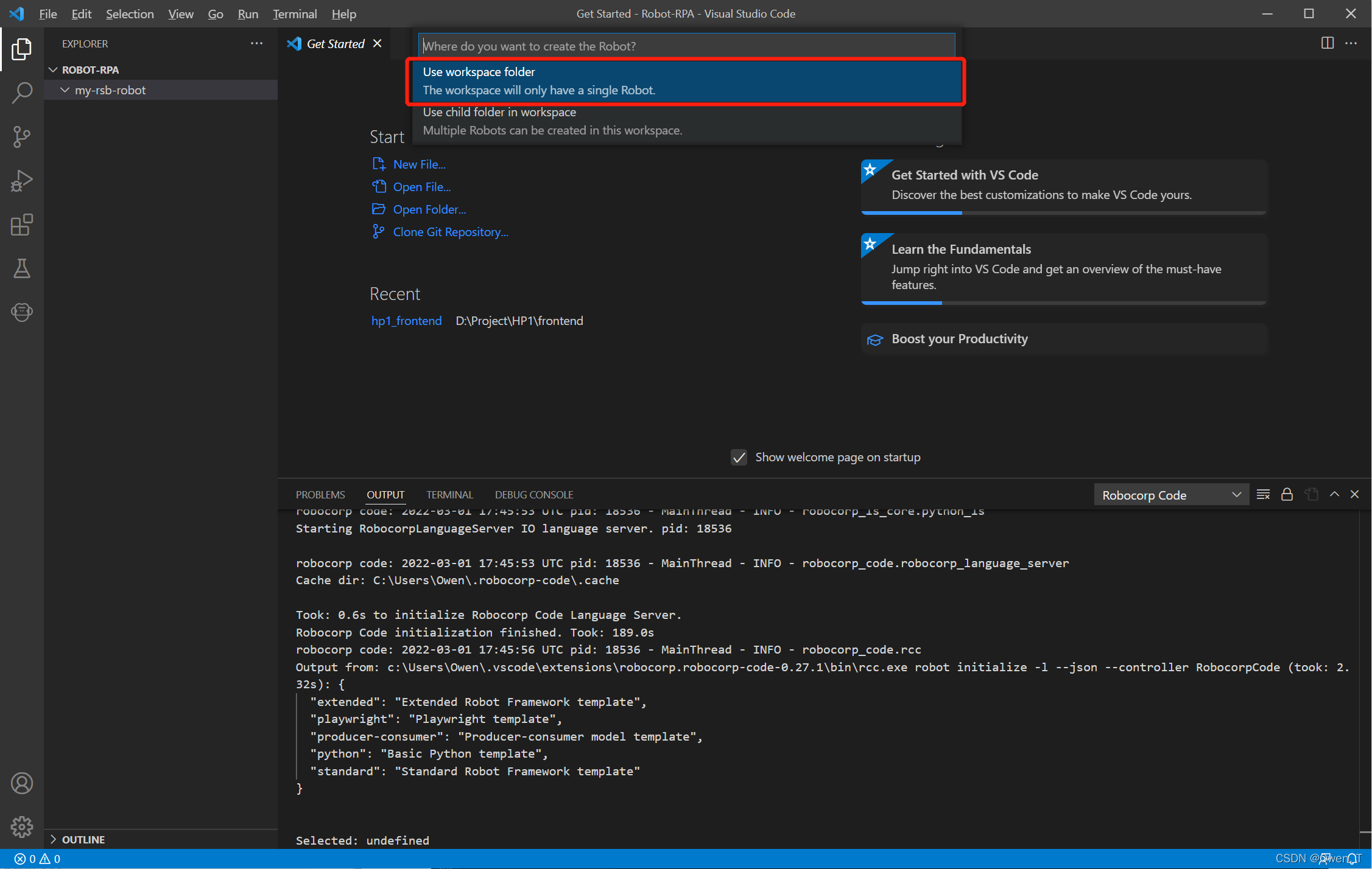 Robot issue upon attempting on Visual Studio to ROBOCORP Create Robot ...
