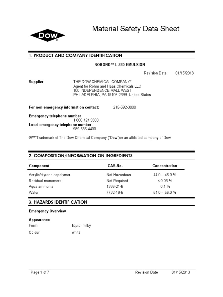 MSDS - Robond L-330 - ISS130910 | PDF | Toxicity | Occupational Safety ...