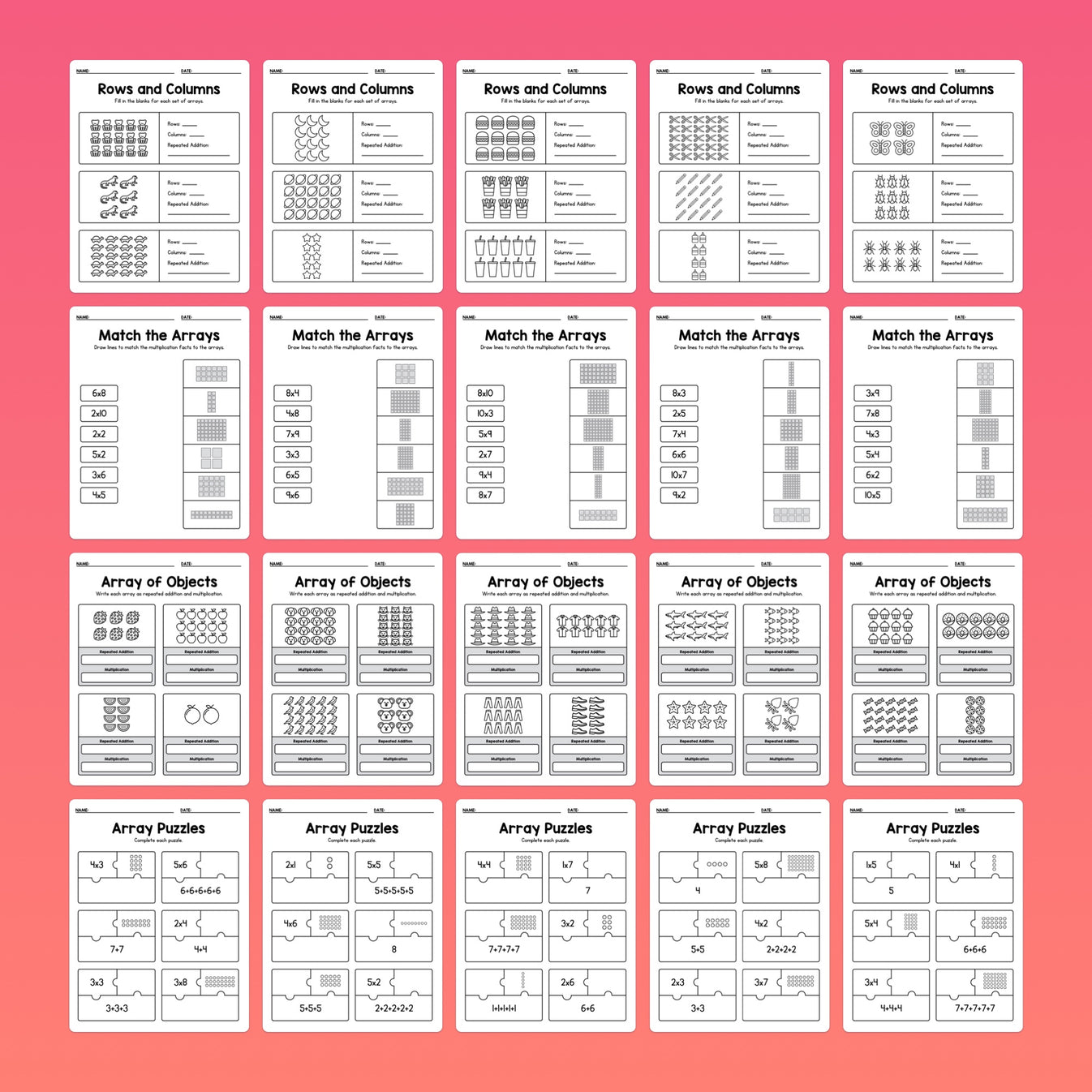 Array Worksheets (Printable PDF) – That Little Robot