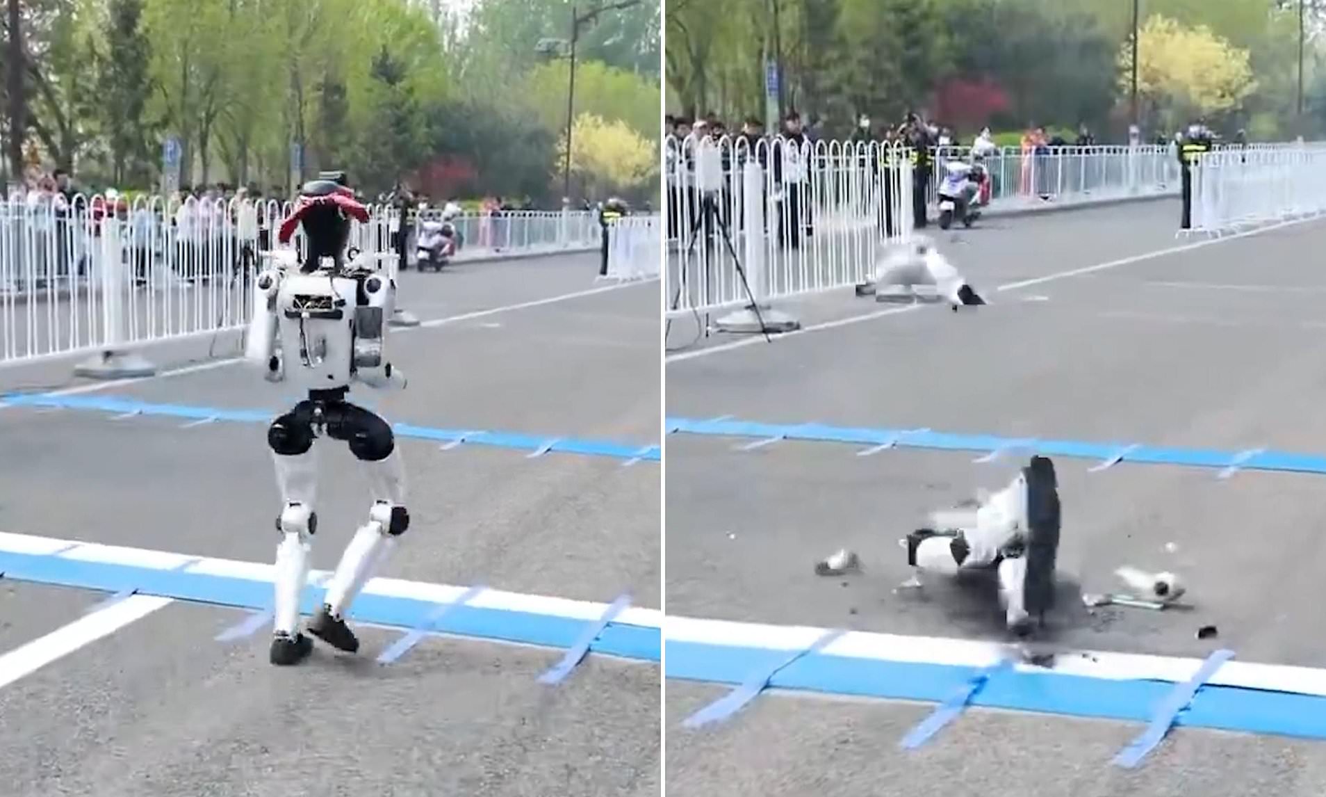 Robot trips and explodes in hilarious fall at start of Beijing marathon ...