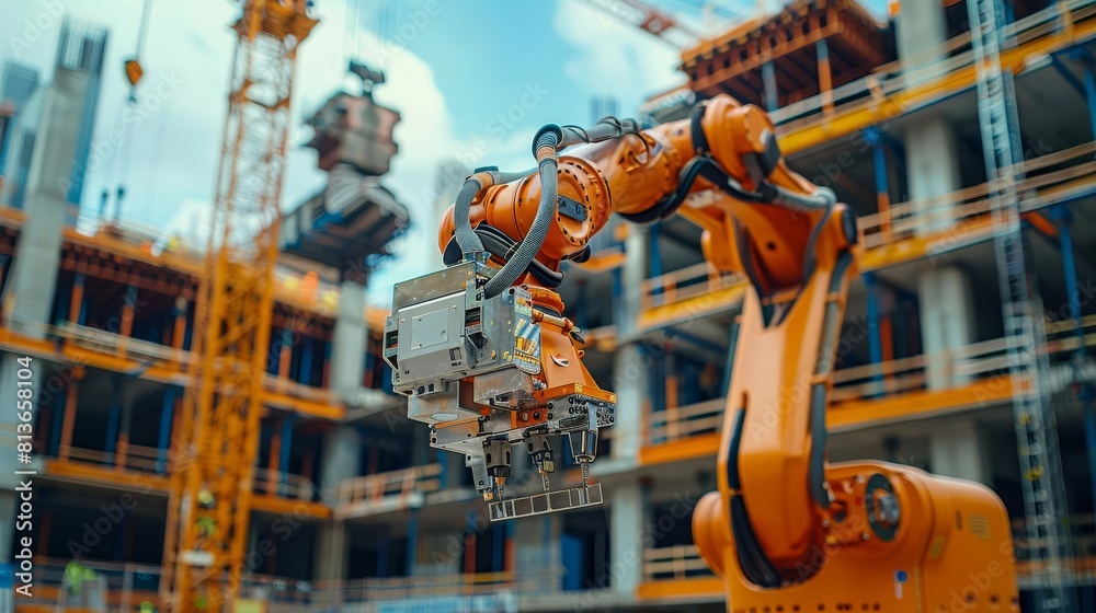 Robotics arms working on automated building tasks at a construction ...