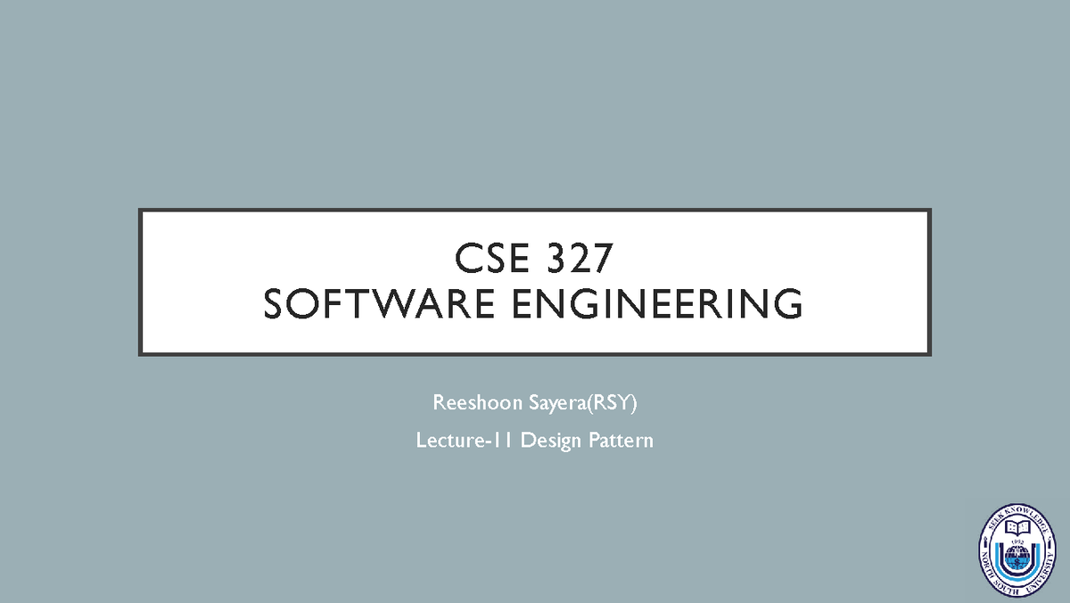 CSE 327 SOFTWARE ENGINEERING Lecture 11: Design Patterns Overview - Studocu