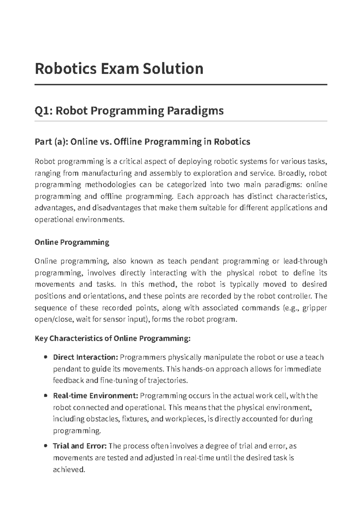 Robotics Exam Solutions: Q1 - Programming Paradigms & Kinematics - Studocu