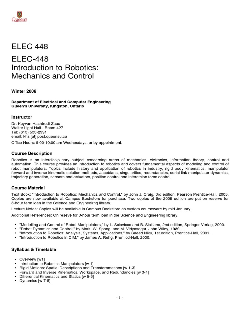Introduction To Robotics Mechanics and Control | PDF | Robotics ...