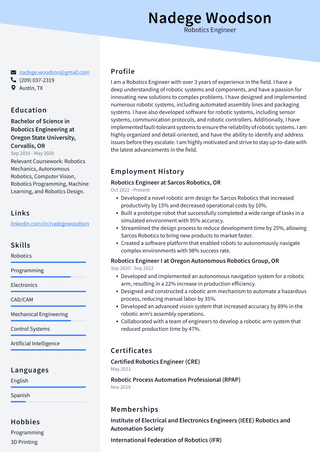 Robotics Engineer Resume Example