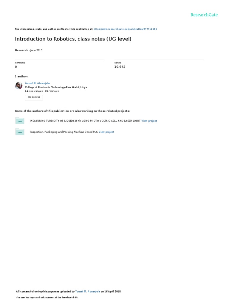 Elementary Robotics - Lecture Note | PDF | Robot | Robotics