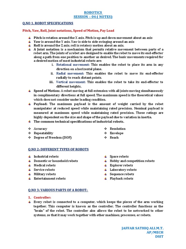 Notes On Robotics | PDF | Robotics | Robot