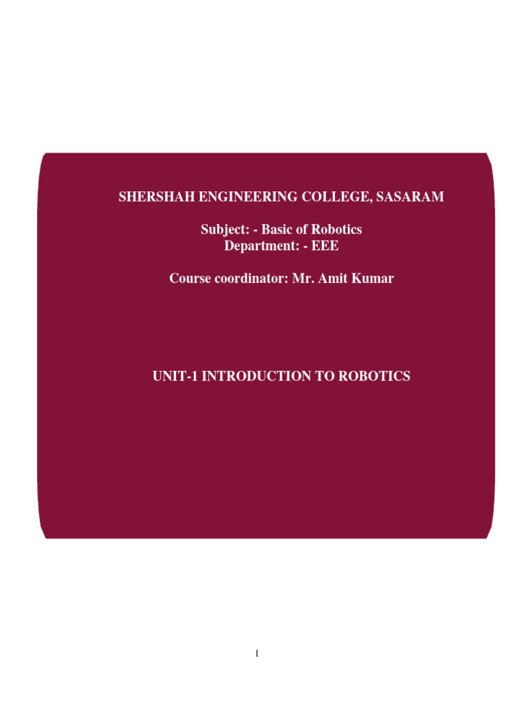 Robotics Unit-1 Notes | PDF | Robotics | Robot
