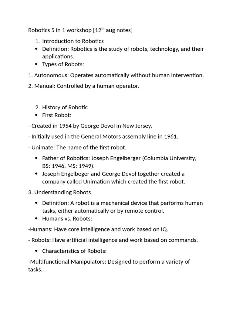 Notes 1 History of Robotics | PDF | Robot | Robotics