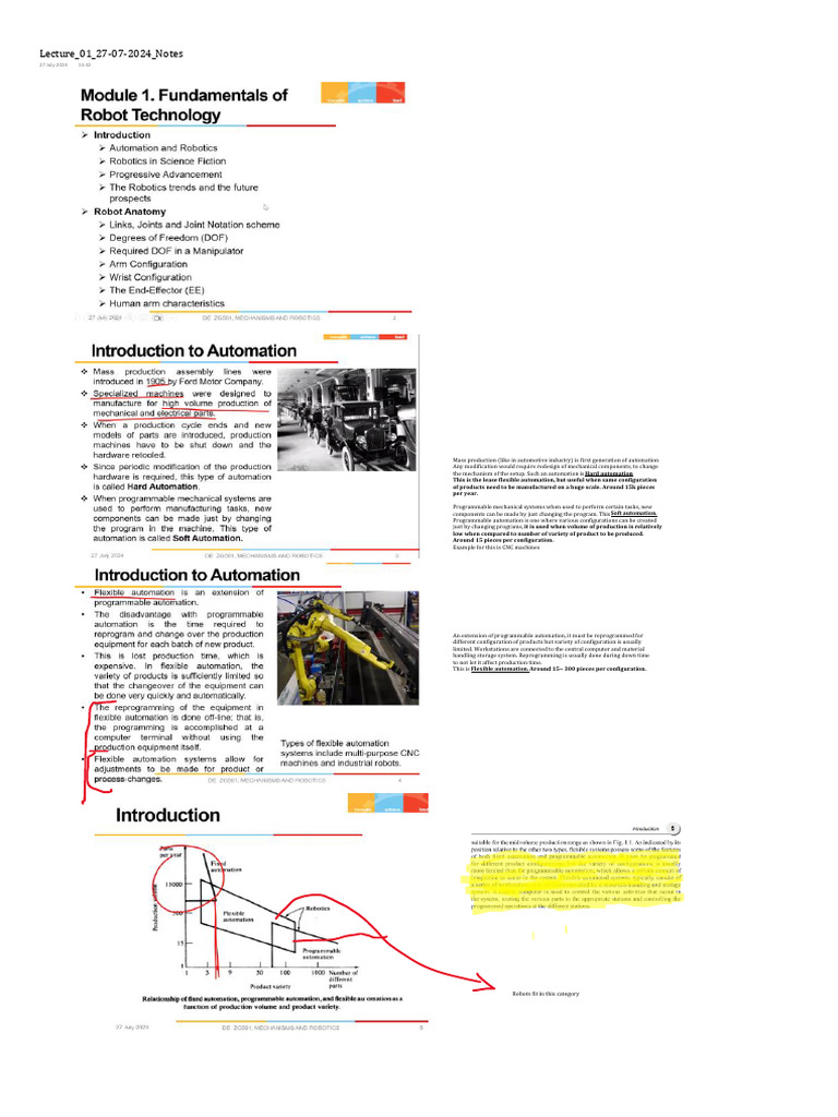 Lecture 01 27-07-2024 Notes Trial | PDF | Robotics | Robot