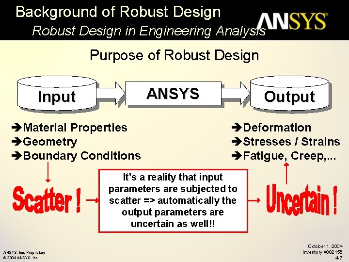 Chapter 4 Robust Design 9 0 2004 ANSYS