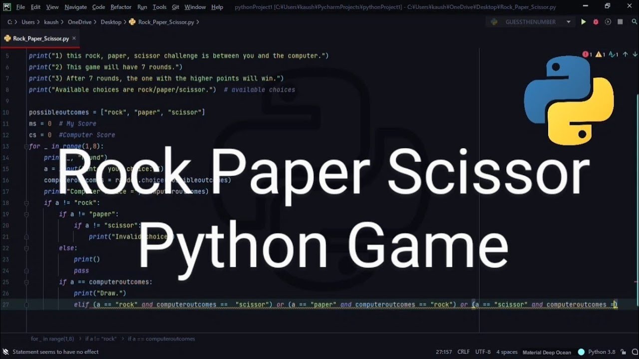 Python | Create Rock, Paper, Scissors GAME [Explained Step by Step ...
