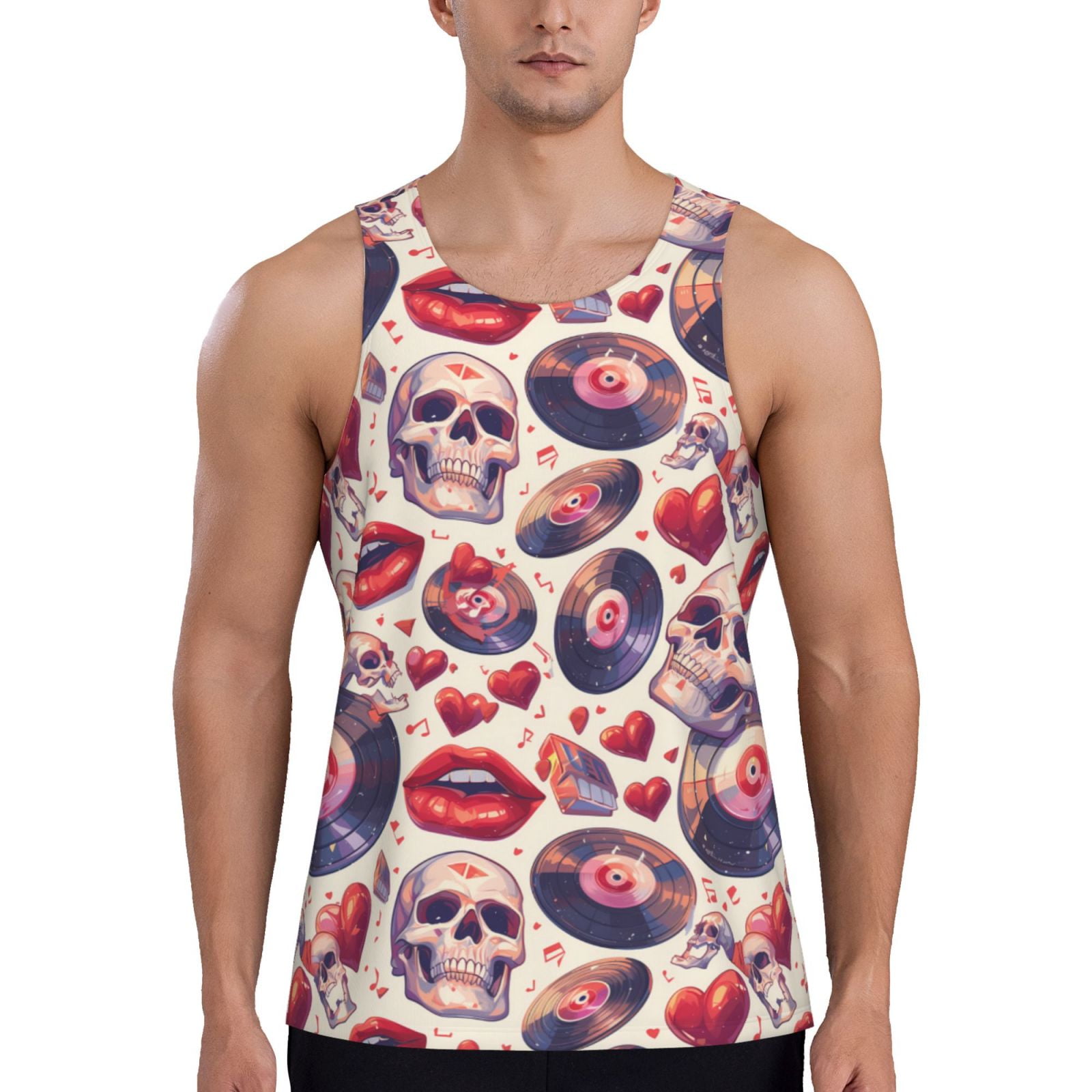 KLL record rock Skull lips Print Men's Muscle Gym Workout Stringer Tank ...