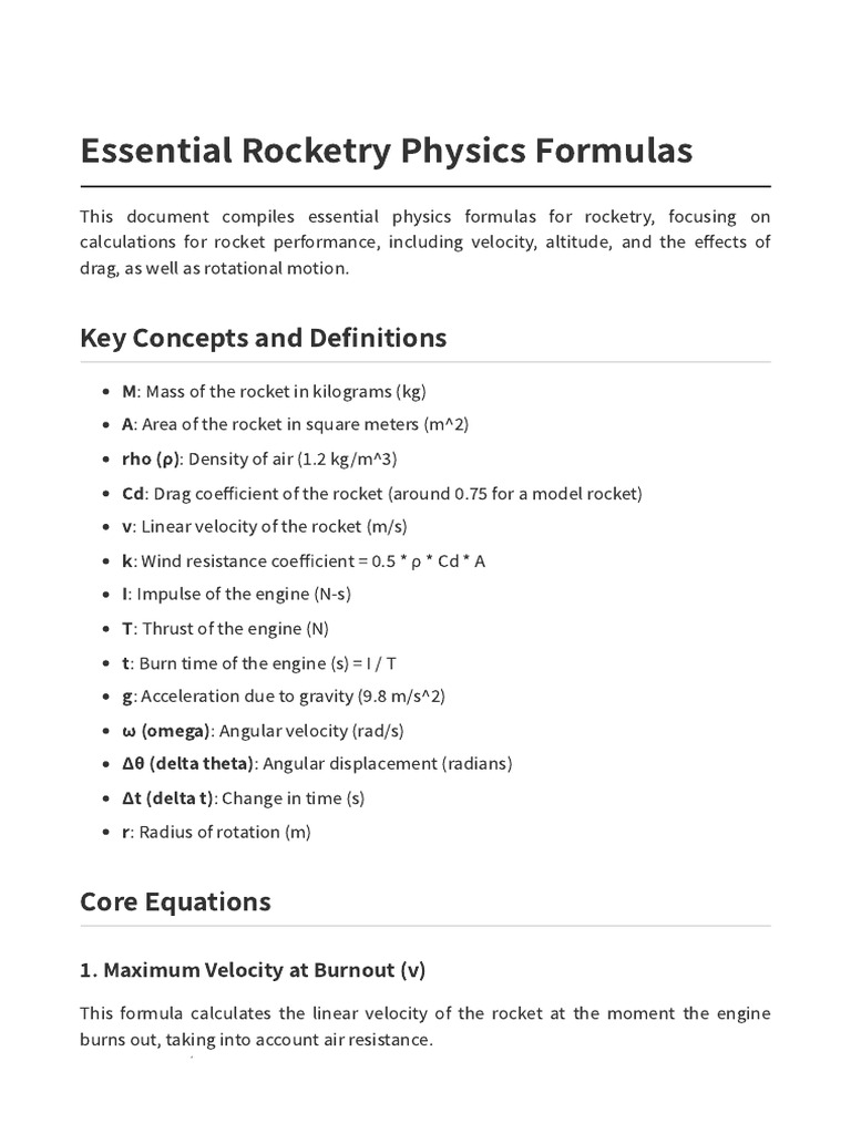 Rocketry Formulas | PDF | Rocket | Velocity