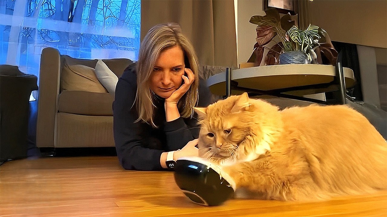 Chubby cat won’t stop rocking her bowl to get snacks