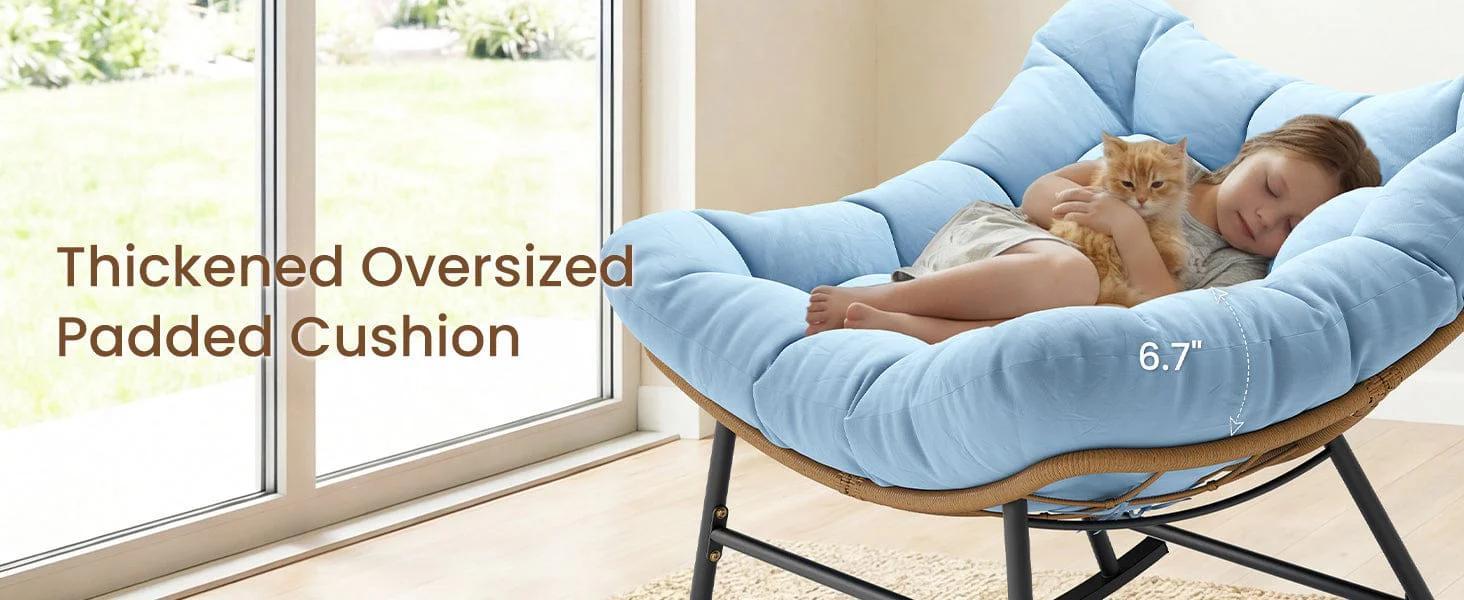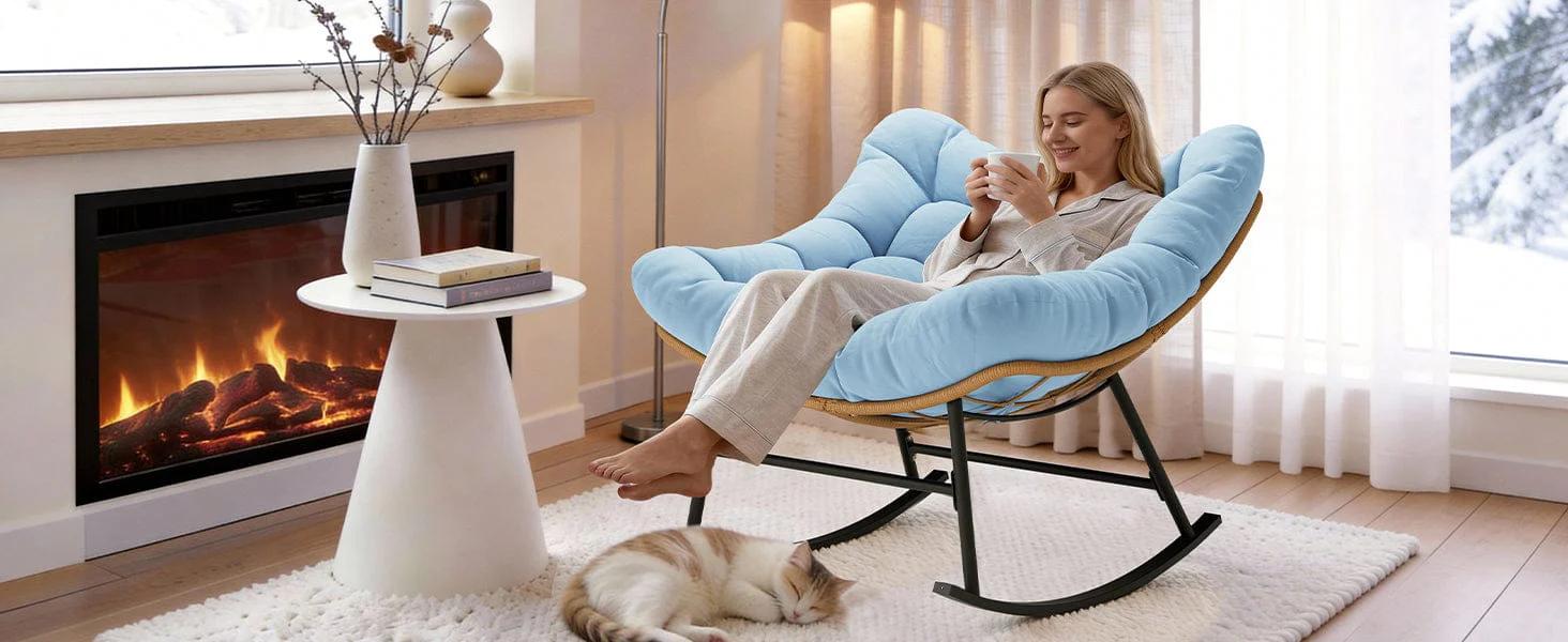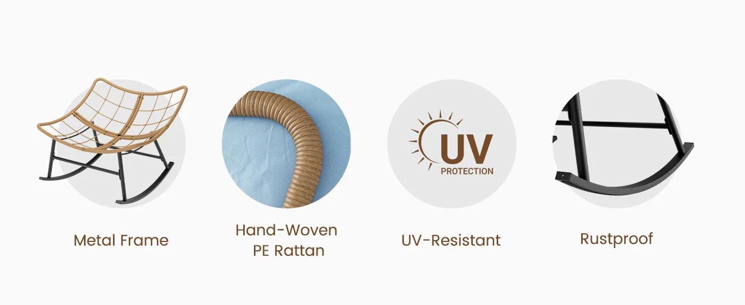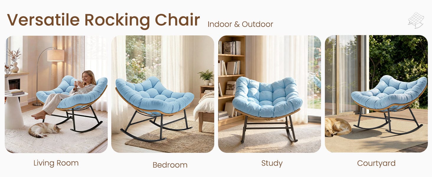 Outdoor Rattan Rocking Chair with Thick Cushion Sky Blue - TikTok Shop