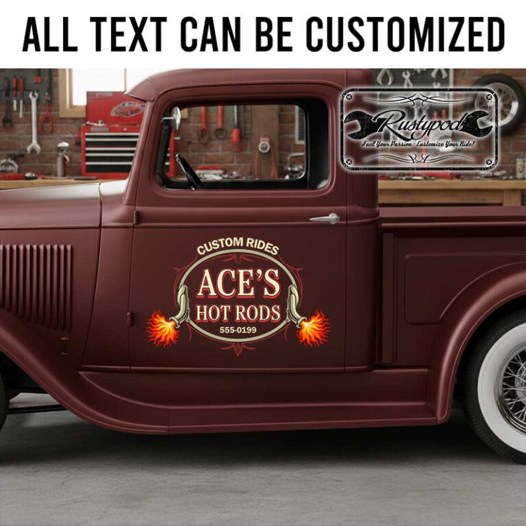 2 pcs personalized hot rod garage | rat rod | truck lettering vinyl ...