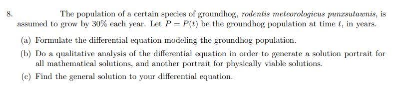 Solved 8. The population of a certain species of groundhog, | Chegg.com