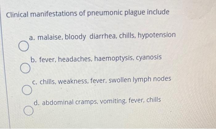 Solved Clinical manifestations of pneumonic plague include | Chegg.com