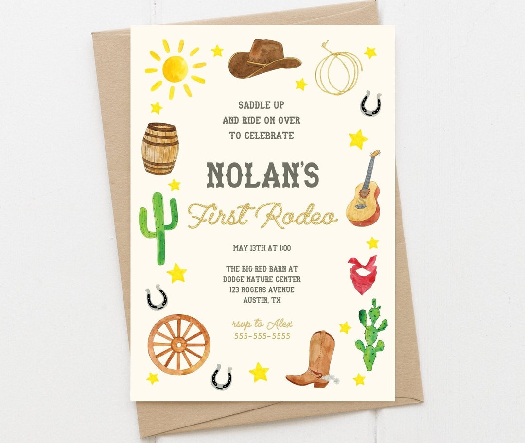First Rodeo Birthday Party Invitation, Cowboy Theme Invite, Southern ...