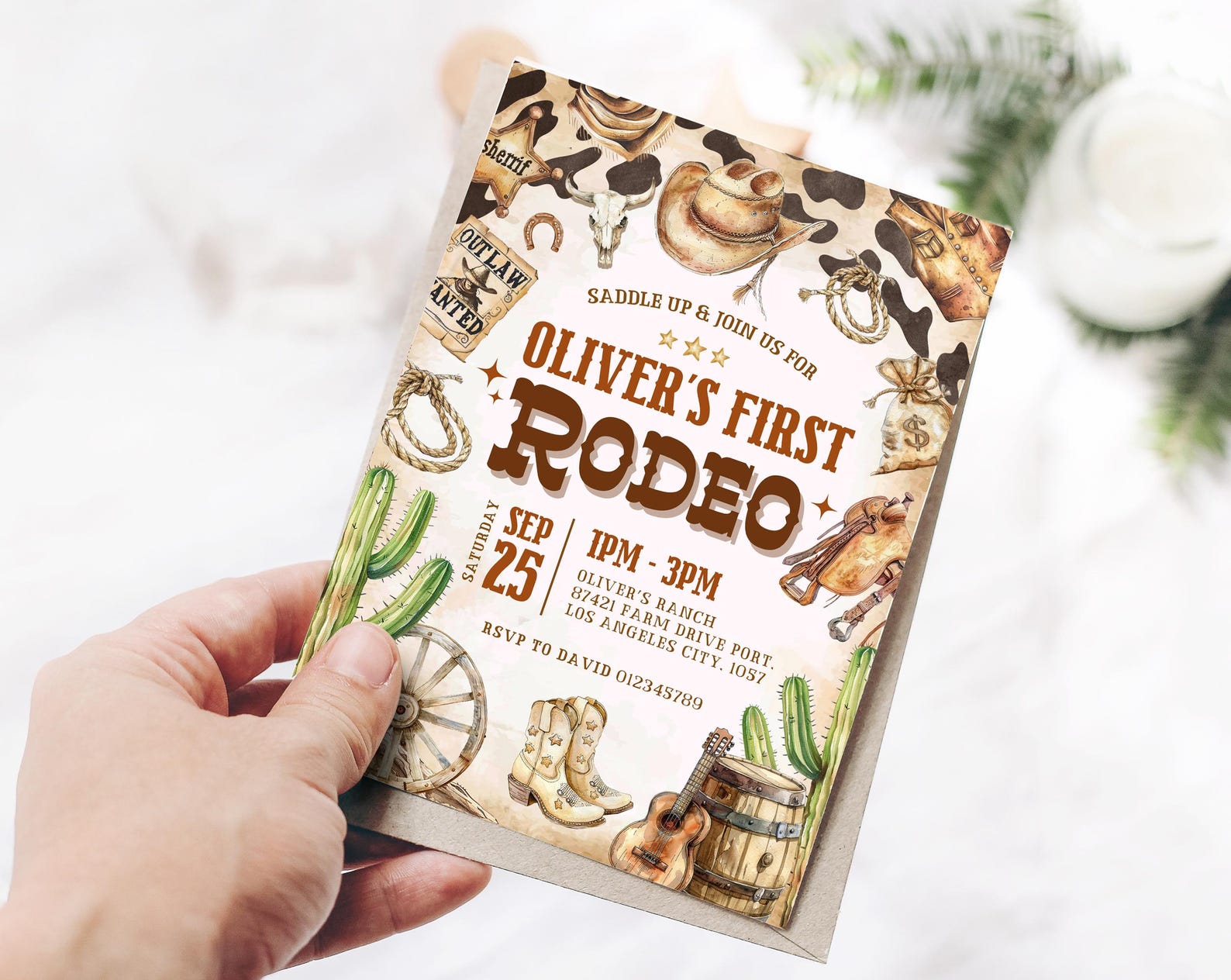 First Rodeo Invitation Template, Wild West Birthday Invite, Boy Cowboy ...