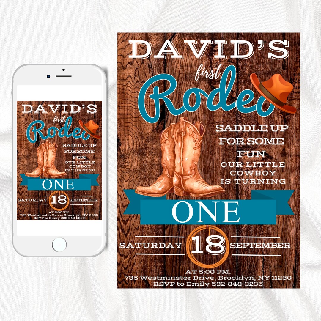 First Rodeo Birthday Invitation Boy, Rodeo 1st Birthday Invite, Cowboy ...