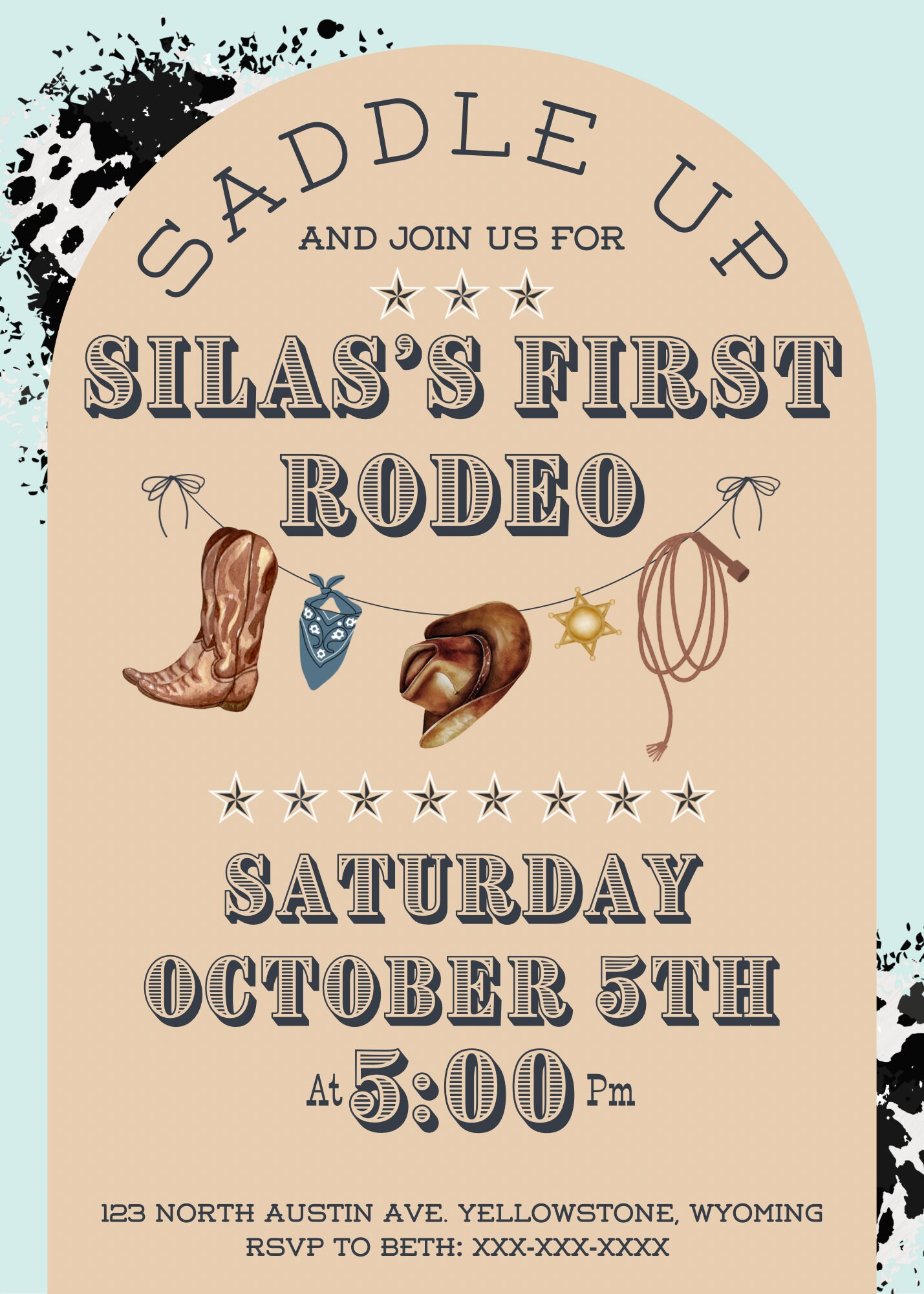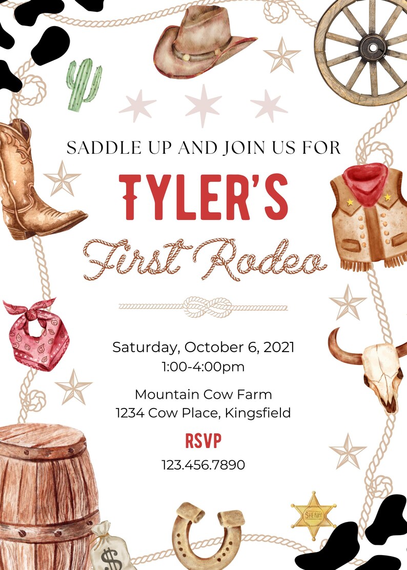 FIRST RODEO - First Birthday Invitation Template, First Rodeo ...