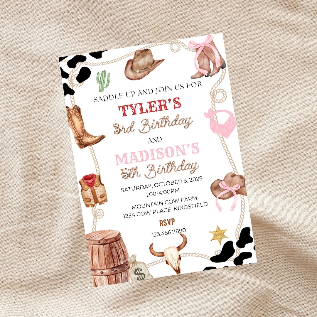 Rodeo-themed Birthday Invitation | Cowboy Party Invite | Editable 5x7 ...