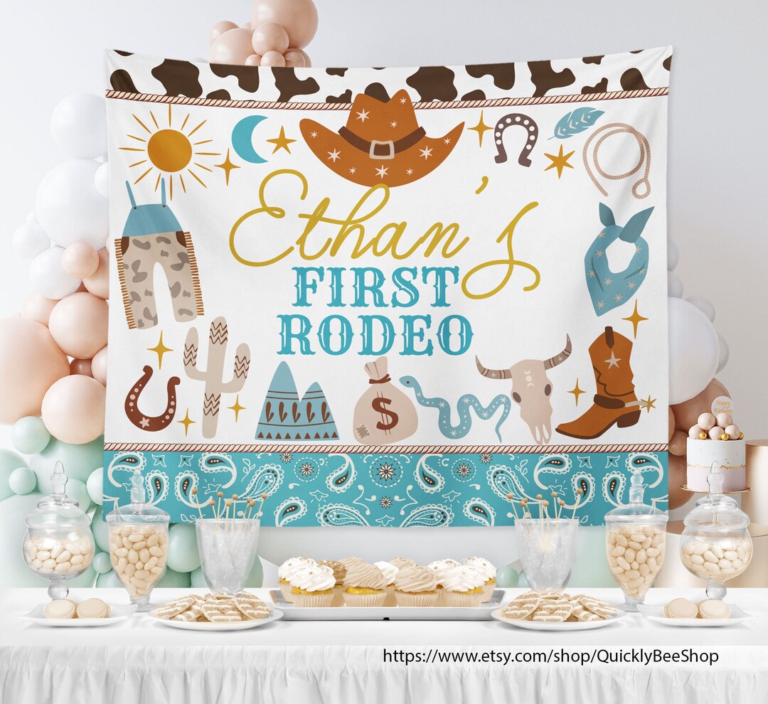 First Rodeo Birthday Backdrop, Wild West Boy, Personalized Cowboy Sign ...