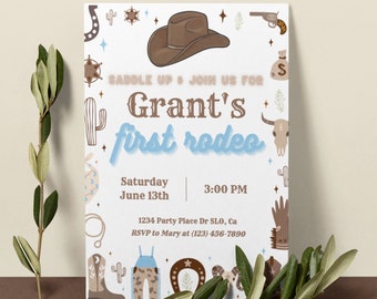 Cowboy My First Rodeo Invitation Boy Birthday Invite Editable Wild West ...