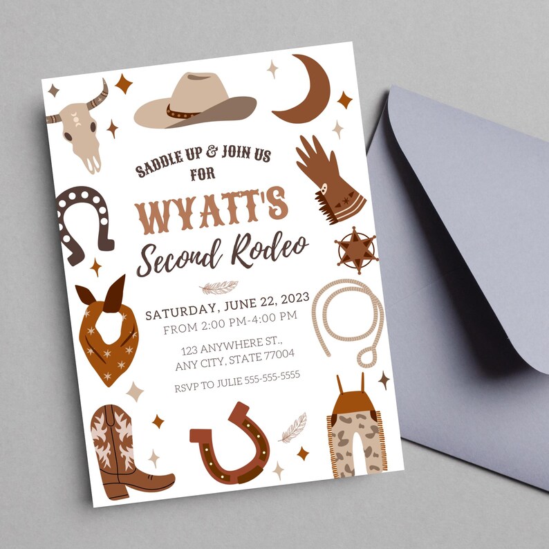 Editable Second Rodeo Invitation: Western Cowboy Birthday (digital ...