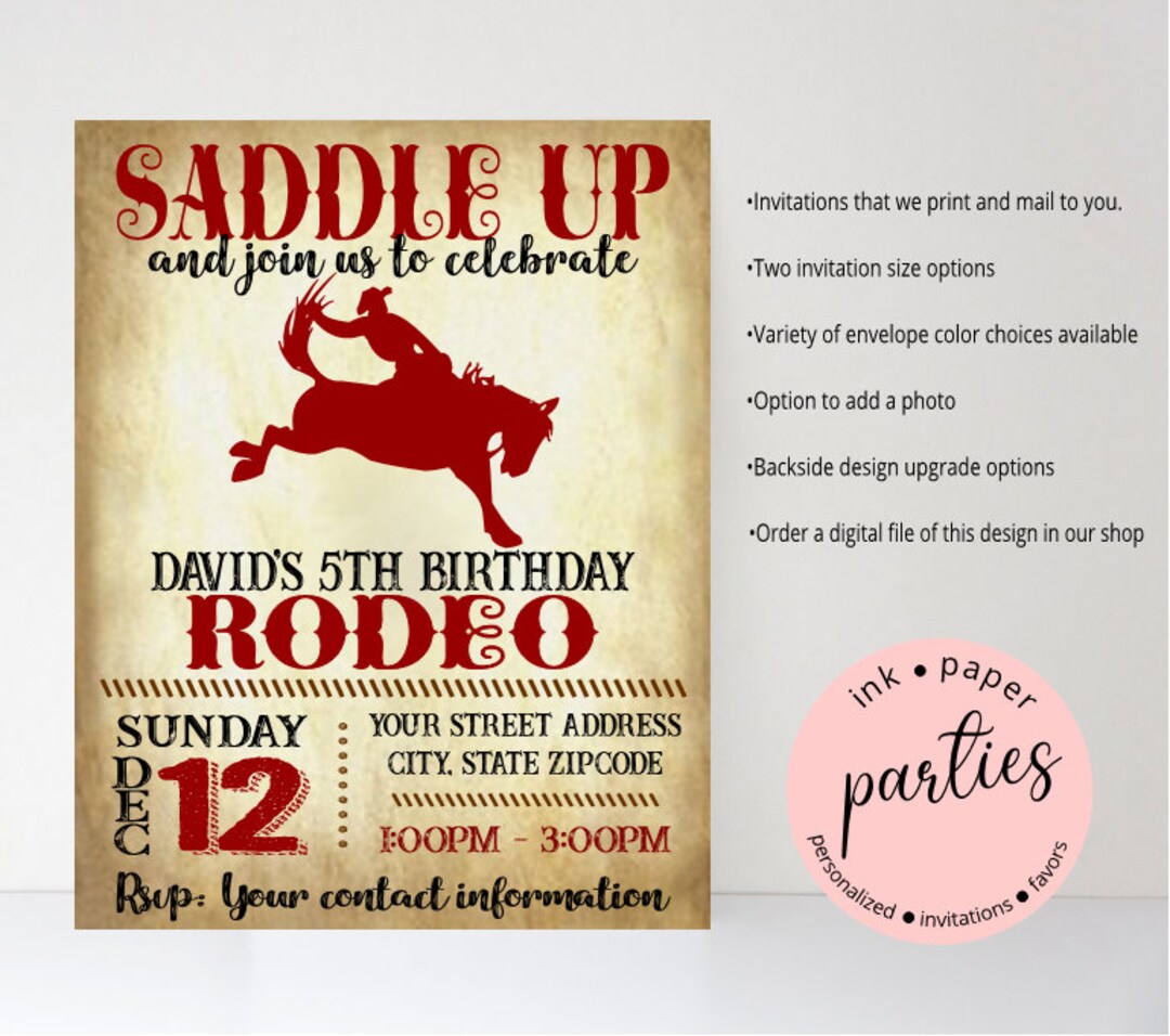 Cowboy Rodeo Birthday Party Invitations, Saddle Up Birthday Invitations ...