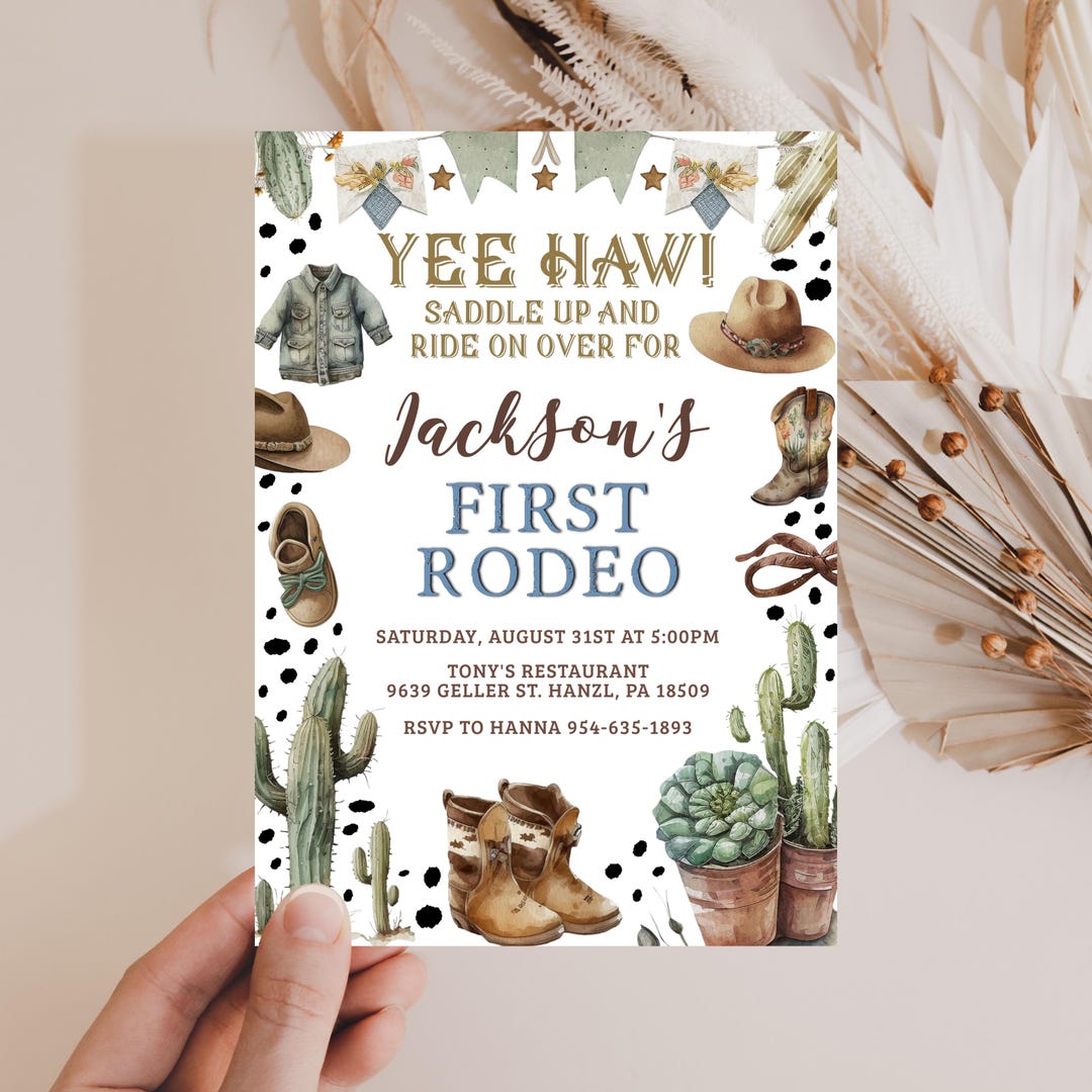 First Rodeo Birthday Invitation Boy, Rodeo 1st Birthday Invite, Cowboy ...