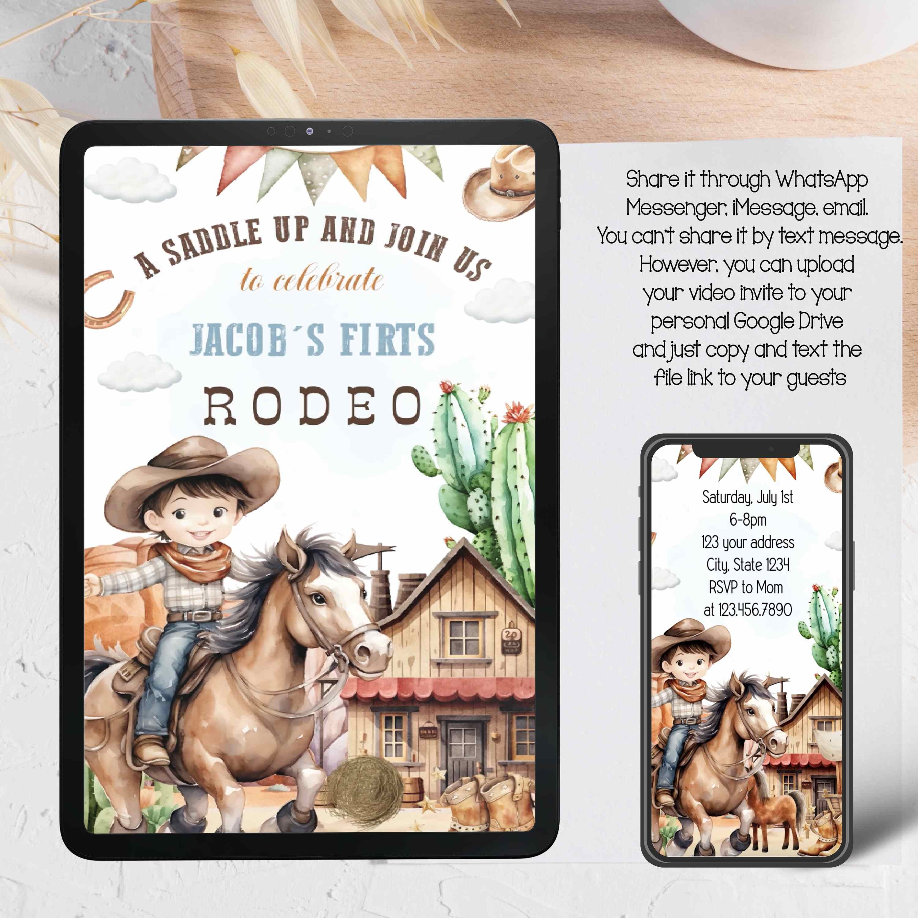 First Rodeo Birthday Invitation, Cowboy Birthday Editable Invite ...