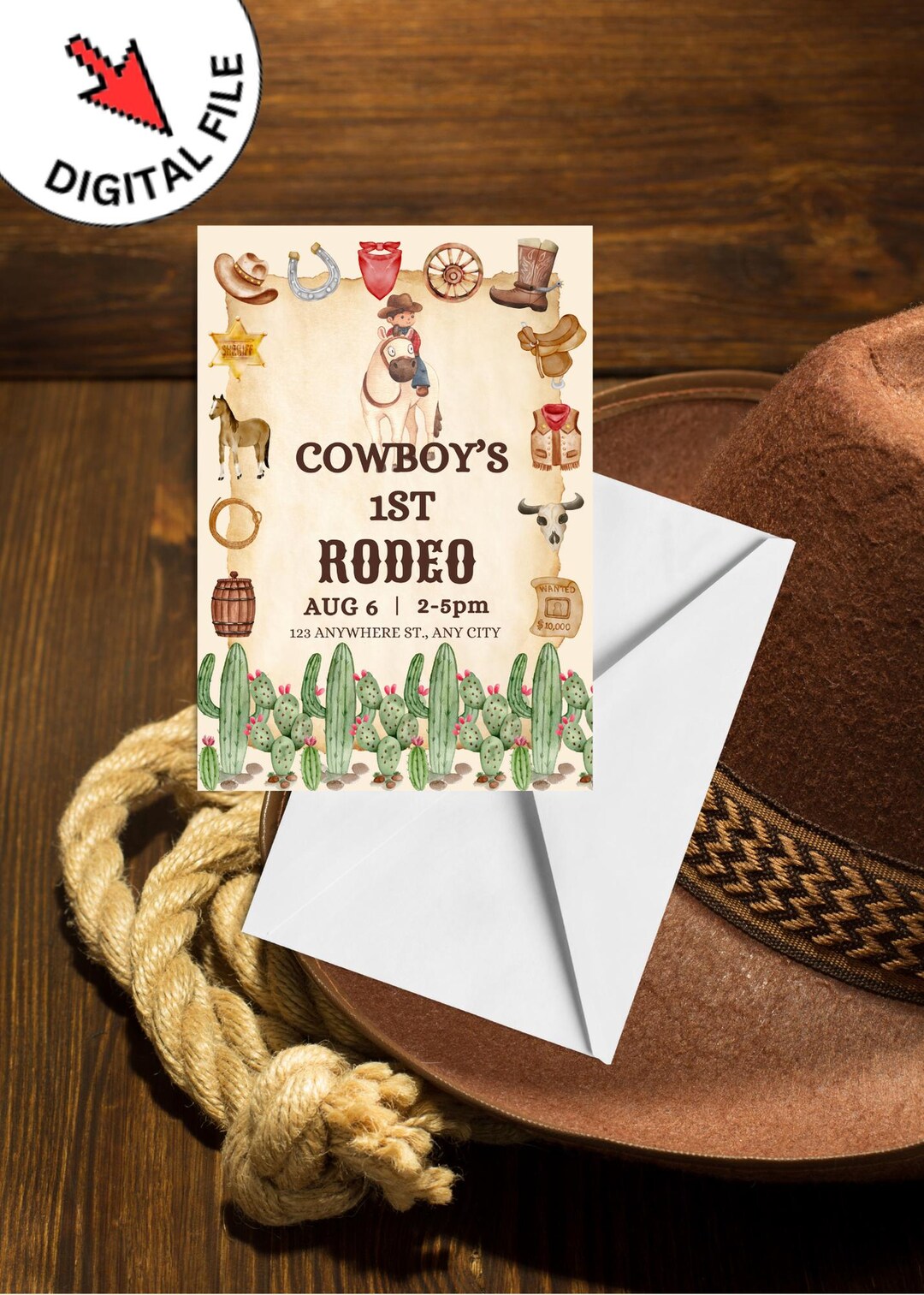 First Rodeo Invitation Template, Wild West Birthday Invite, Boy Cowboy ...
