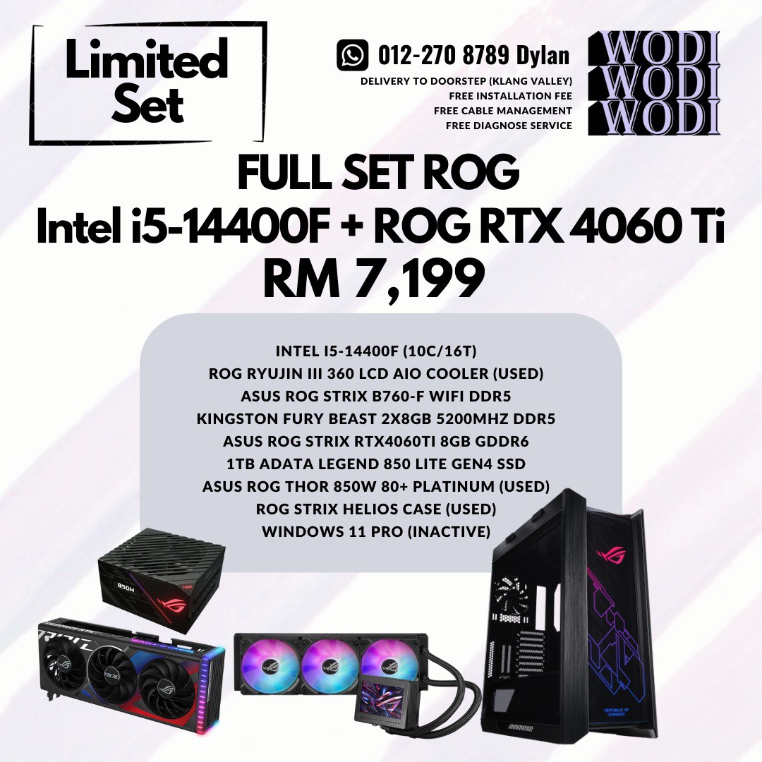 Limited Full ROG Strix Set i5-14400F RTX4060Ti, Computers & Tech ...