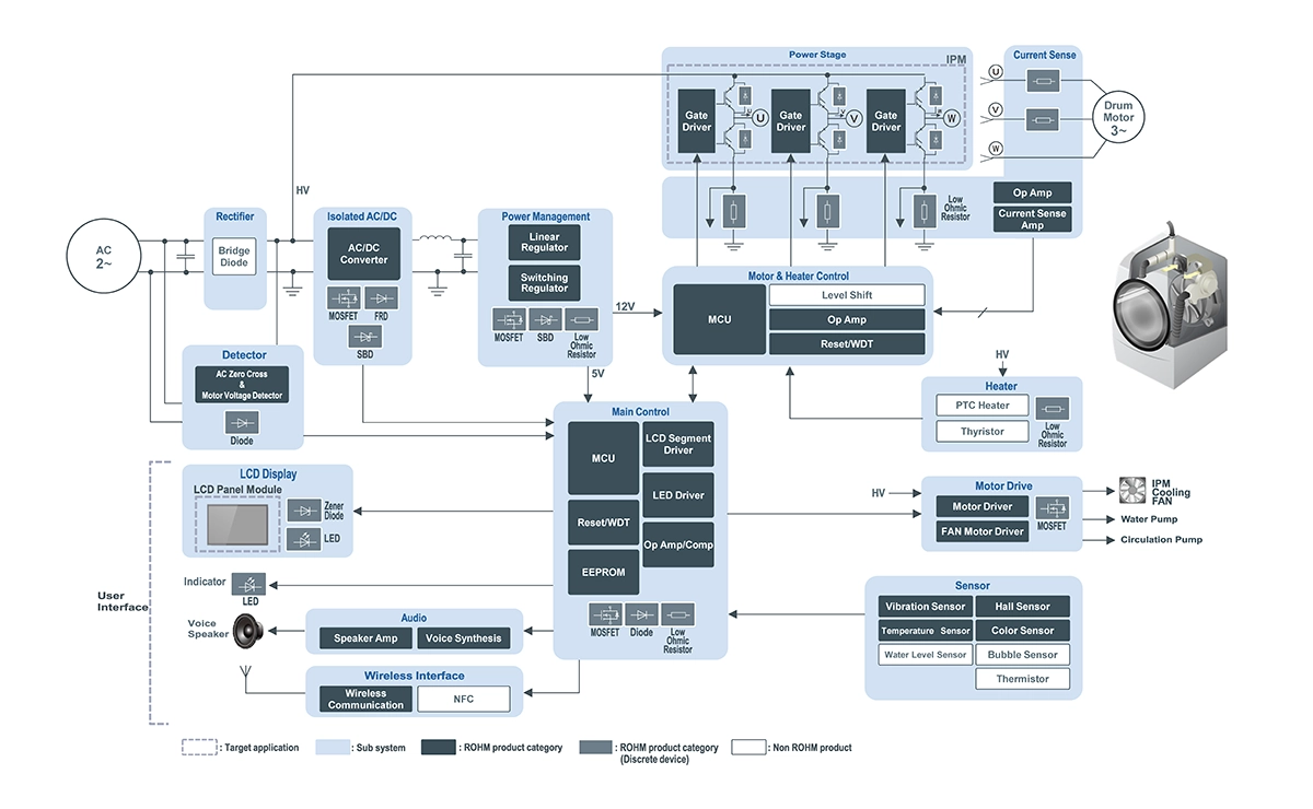 세탁기 | 가전 제품 | 민생기기 | 솔루션 | 로옴 주식회사 - ROHM Semiconductor