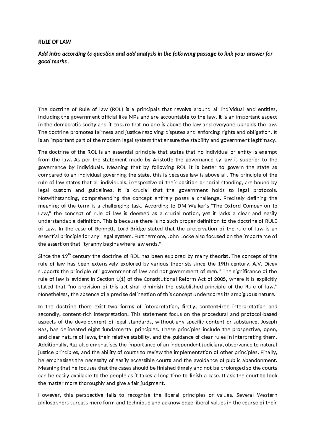 RULE OF LAW: Structure and Analysis Guidance for ROL Essay - Studocu