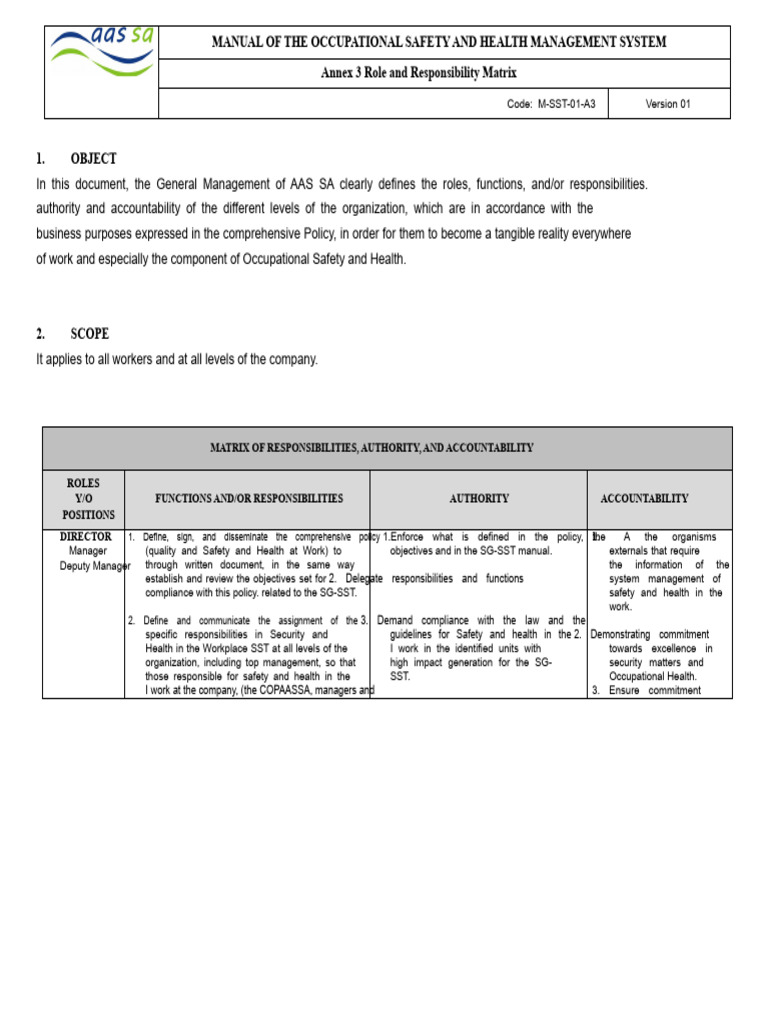 MATRIX OF ROLES AND RESPONSIBILITIES | PDF | Occupational Safety And ...