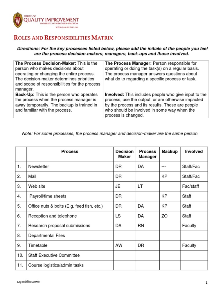 Roles And Responsibilities Matrix