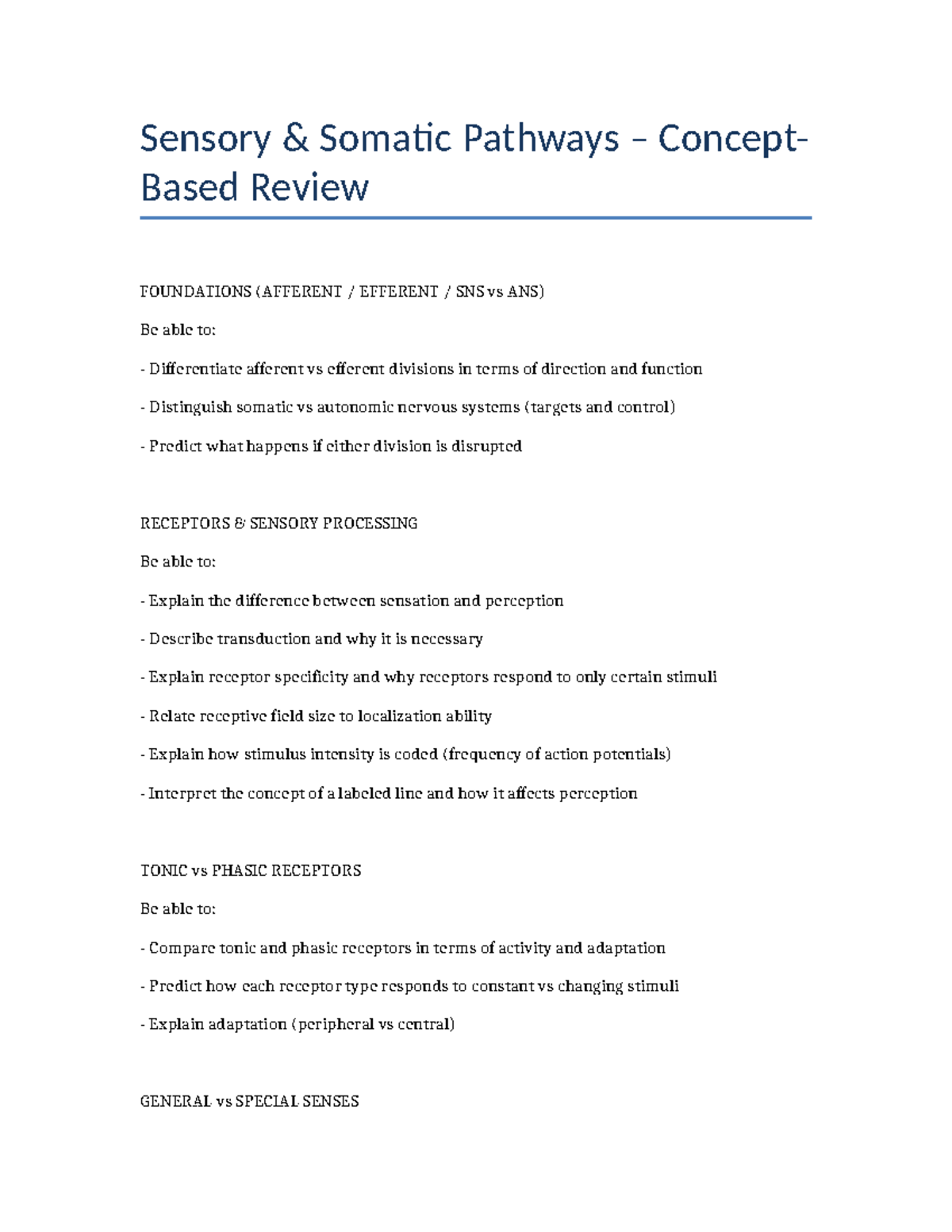 Concept-Based Review of Sensory Somatic Pathways (FOUNDATIONS) - Studocu