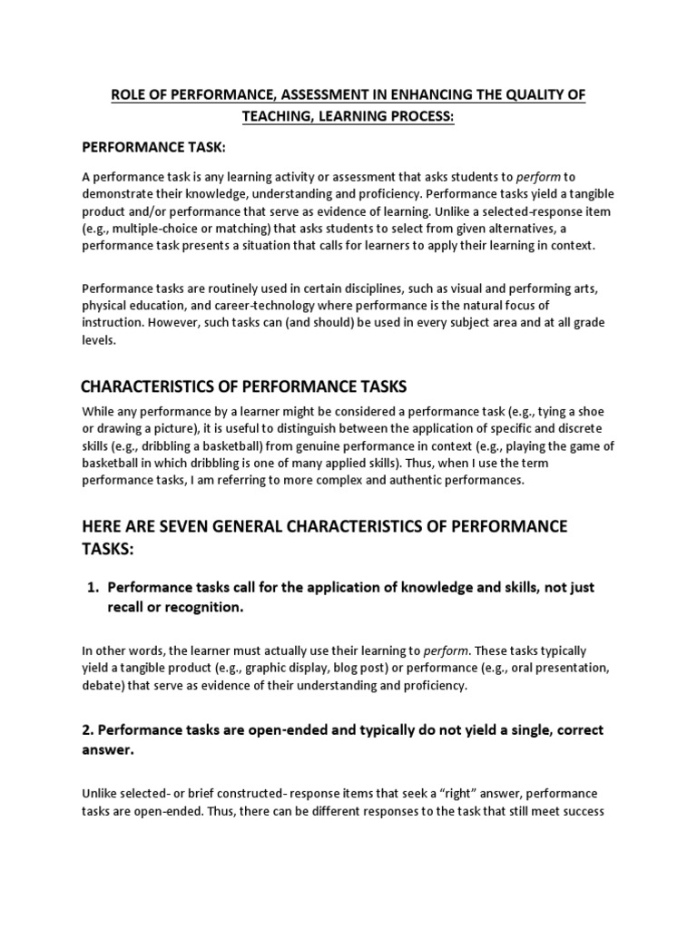 Performance Assessment Role for Students - 387 Words | Essay Example