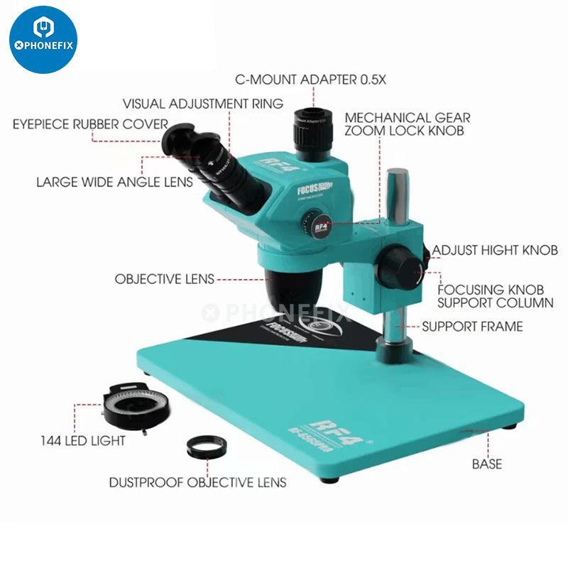 RF4 HD Trinocular Stereo Zoom Industrial Microscope For PCB Repair