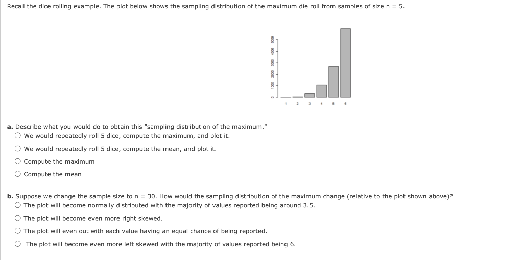 Solved Recall the dice rolling example. The plot below shows | Chegg.com