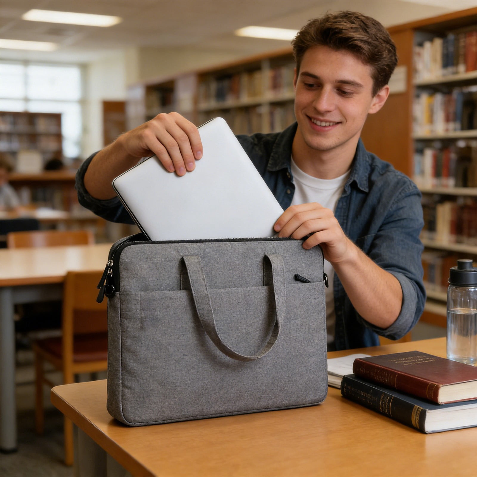 14 Inch Laptop Bag, Water-Repellent Cloth Shoulder Bag with Soft Lining ...