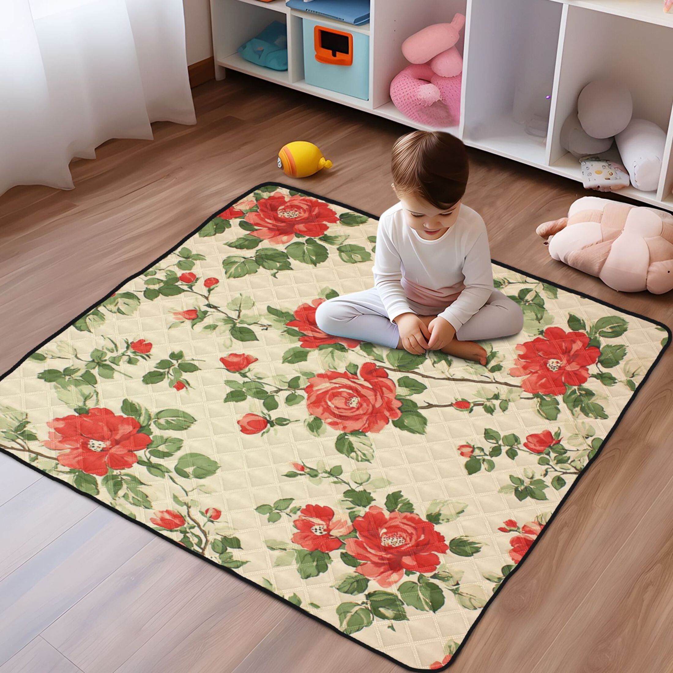 WOBOGO Red and Green Floral Pattern Baby Playmats Extra Large ...